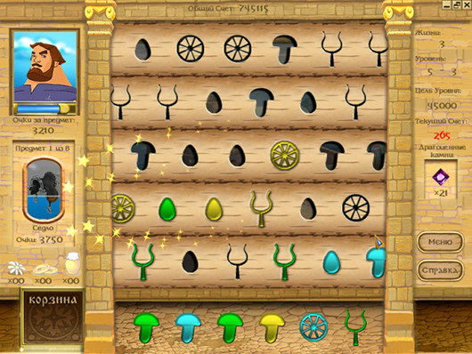 Красочная головоломка, созданная по мотивам легендарного мультфильма "Илья Муромец и Соловей-разбойник". Вместе с былинным богатырем вы отправитесь в стольный Царьград и сразитесь с множеством коварных супостатов. Чтобы сила молодецкая не оставила славного витязя, вам необходимо за отведенные промежутки времени заполнять волшебными предметами вращающиеся берестяные грамоты.